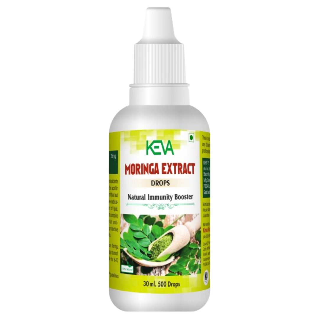 Keva Moringa Extract Drops contains the Moringa Leaf Extract (Moringa Oliefera) which is naturally boosts the immunity. This is quality product produced under GMP guidelines.